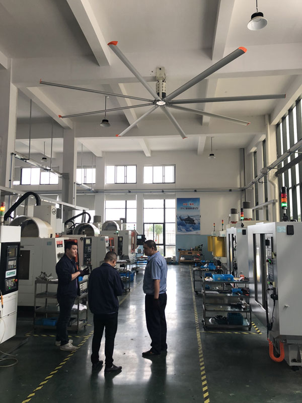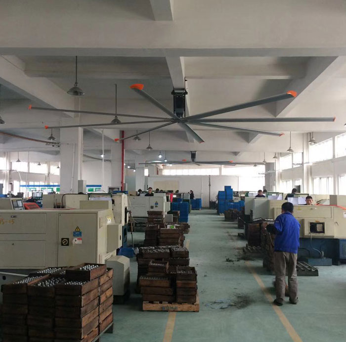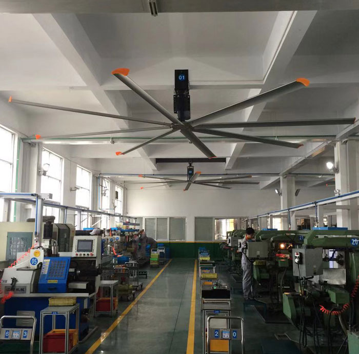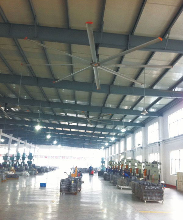 我公司生產(chǎn)的大型工業(yè)吊扇直接懸掛在廠房屋梁下,風力柔和,能加快車間空氣流通,有效降低車間內(nèi)溫度,改善車間空氣環(huán)境質(zhì)量,有利于員工的身體健康。